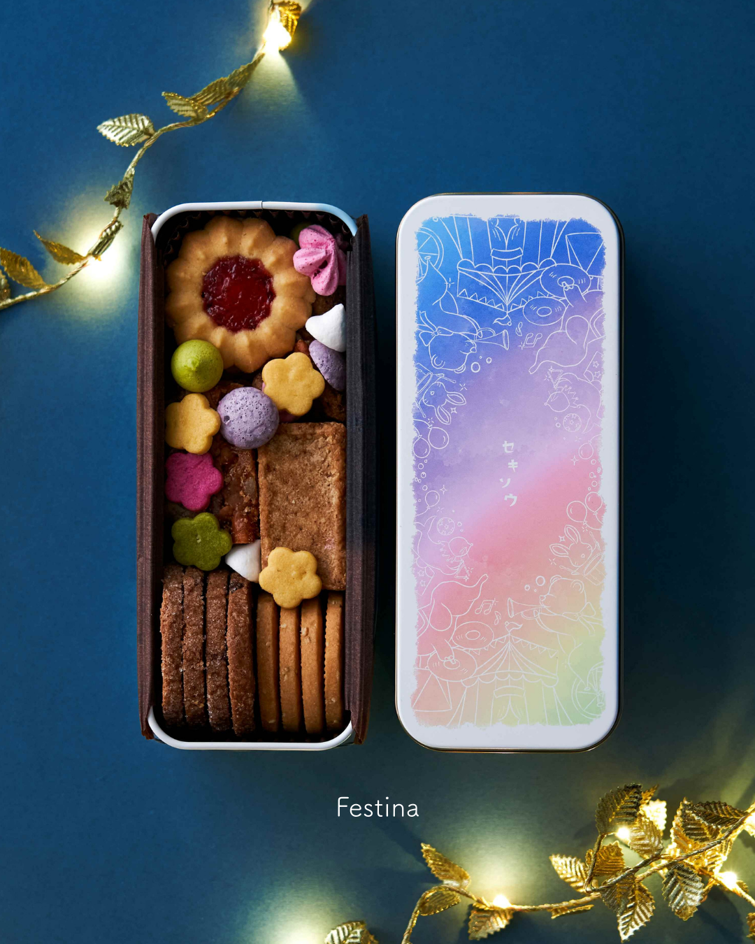 フェスティナ缶は、13種類の焼き菓子が織りなす“食べる祝祭”。